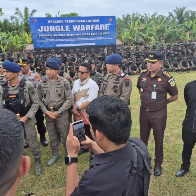 Kejaksaan Negeri Aceh Utara turut menghadiri dan mendukung pelaksanaan Upacara Pembukaan Latihan Peningkatan Kemampuan Jungle Warfare (Perang Hutan) Personel Satuan Brimob Polda Aceh Tahun 2026